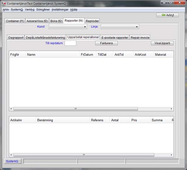 | Visa kunds upparbetade reparationer | Dubbelklicka på kundens rad för att se dennes reparationer