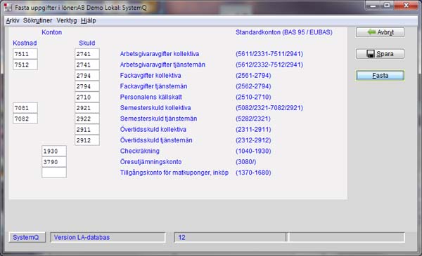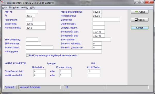 Här registrerar du de fasta uppgifter som används i affärssystemets lönerutiner.