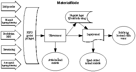Beskrivning av rutin i Affärssystemet SystemQSystemQ hanterar lagret enligt FIFU metoden. Detta innebär att varje inleverans lagras som en FIFU-post. Denna har ett lagervärde som överensstämmer med det inköpspris som betalades på leverantörsfakturan eller summan av FIFU-värde på materialförbrukning i MPS. Bästa resultat uppnås genom att alla inleveranser till lagret hanteras med inköpsorder - > inleverans -> leverantörsfakturakontroll. Man får då en god kontroll över förväntande/planerade inleveranser. Vid utleverans avräknas FIFU-poster i den ordning som inleverans skett. Artikel-månad-statistik uppdateras. Saknas FIFU-poster på lagret uppstår ett negativt lagersaldo och transaktionen lagras som ett ej bokfört uttag som kommer att vänta på nästa inleverans och då avräkna lagret. Lagerjournalen bokför kostnaden för sålda/utlevererade varor. Kostanden är lika med FIFU-posternas värde som kommer från leverantörsfakturorna. Eftersom Kund-artikel-månadstatistiken summerar antal, försäljningsvärde och inköpskostnad så att täckningsbidrag kan beräknas är det lagerjournalen som uppdaterar denna statistik. Om inga inleveranser sker kommer det inte heller bli någon statistik. Om man ej kan hantera inleveranser med inköpsorder eller produktion får man välja mellan manuell lageruppdatering eller automatisk lageruppdatering. |