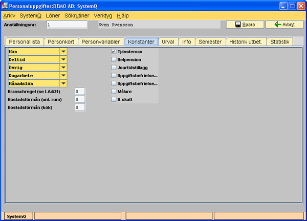 Personkonstanterna består till största delen av information som används på periodiska rapporter.