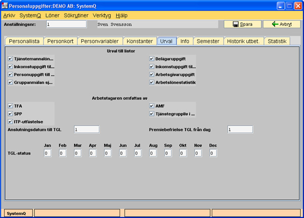 Affärssystem: PERSONALUPPGIFTERURVAL | |||||