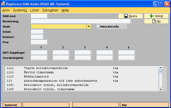 Affärssystemet använder sig av SIAK-koder för olika sorters löneregleringar.