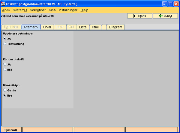 Affärssystem: UTSKRIFT POSTGIROBLANKETTER | |||||